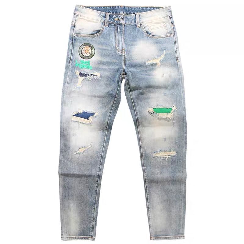 春秋季网红同款潮牌牛仔裤男士破洞潮流欧货时尚修身小脚裤长裤子