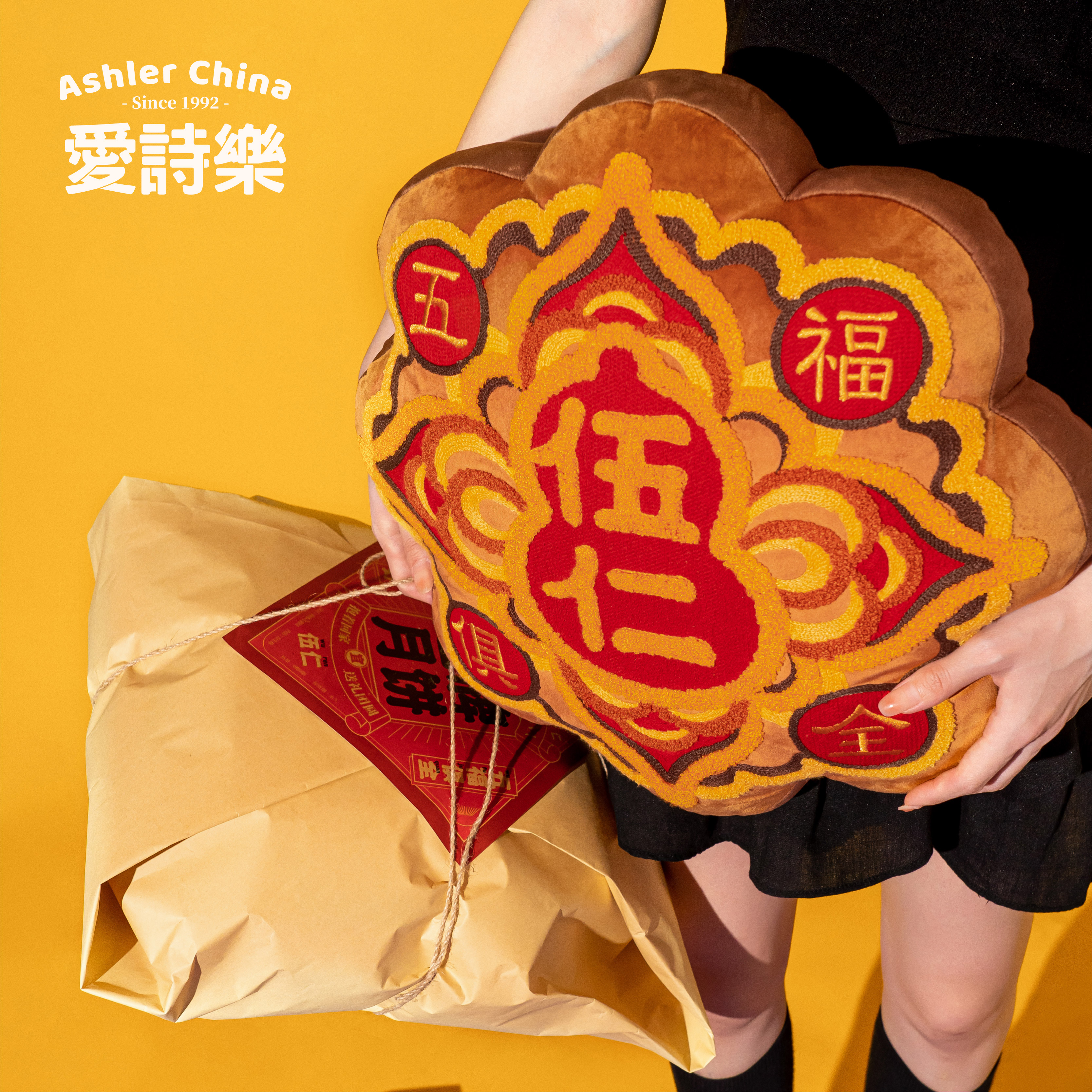 爱诗乐『月饼』抱枕喜庆靠垫送朋友刺绣创意摆件客厅沙发靠枕家居