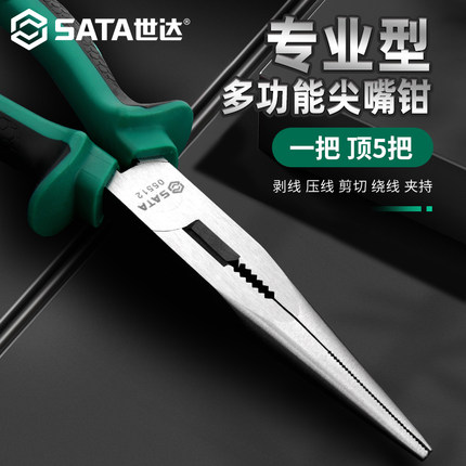 世达尖嘴钳电工专用多功能加长5/6寸8寸不锈钢长嘴钳sata工业钳子