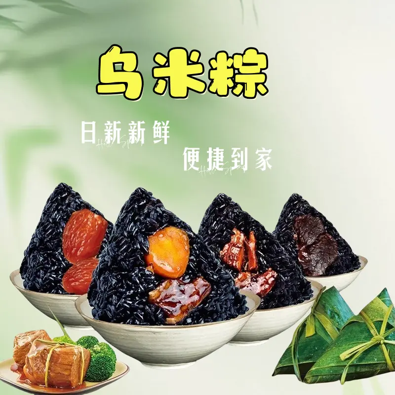 嘉兴乌米粽子蛋黄鲜肉粽豆沙赤豆蜜枣甜粽乌米饭糯叽叽早餐食品