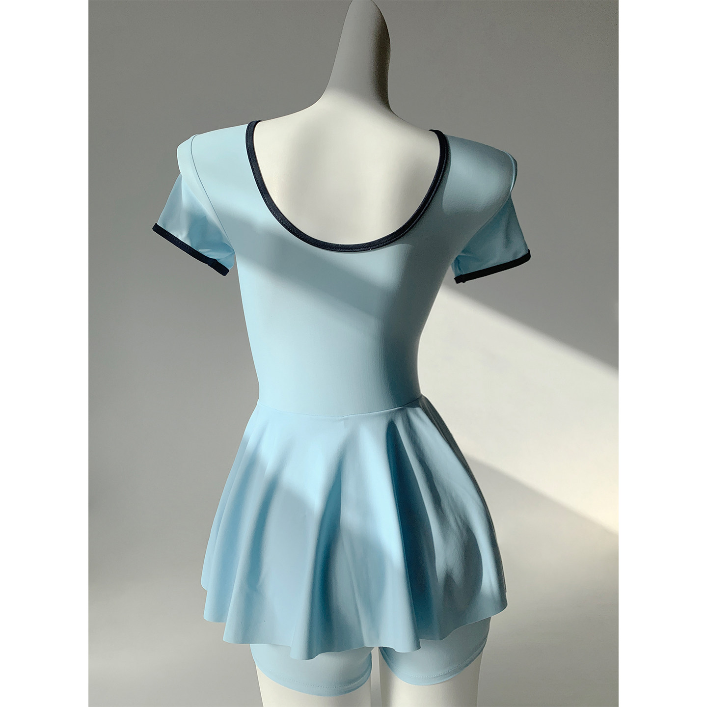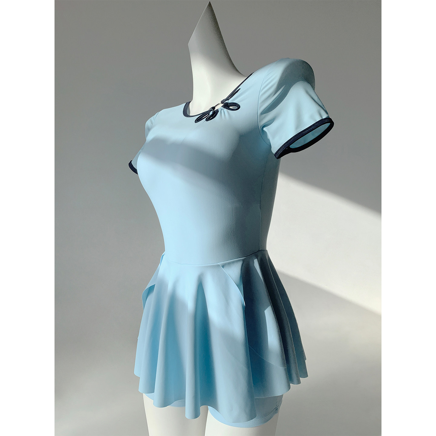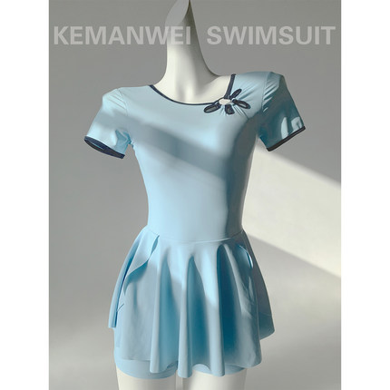 少女风学生保守连体裙式温泉泳衣