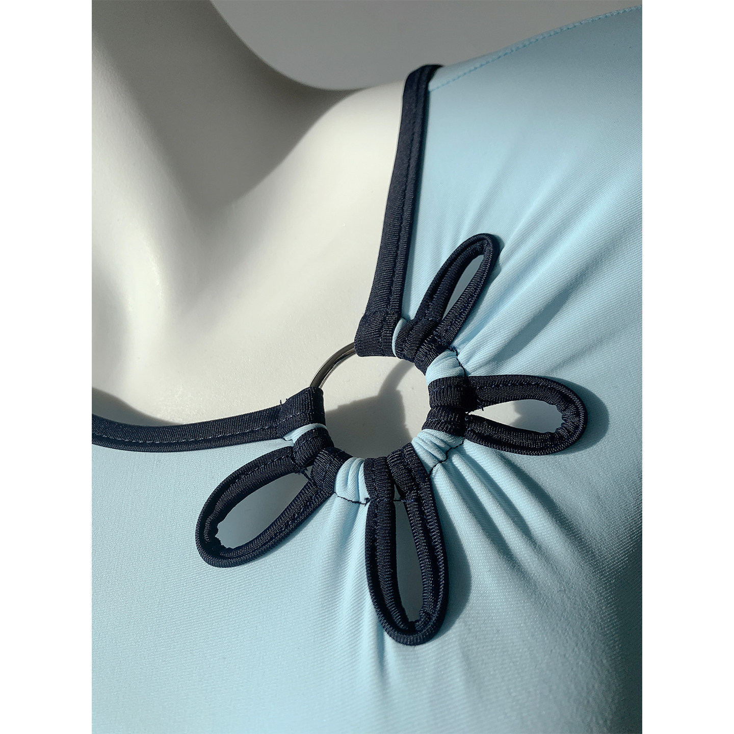 【中式美学】蓝调显白高级镂空小花修身显瘦连体泳衣女泡温泉新款