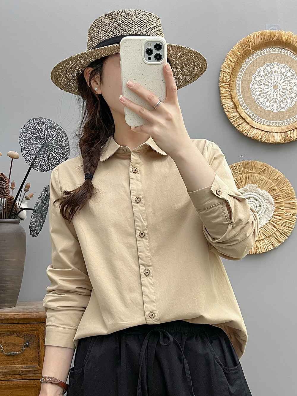 宽松韩版长袖纯棉棉纱女士衬衫