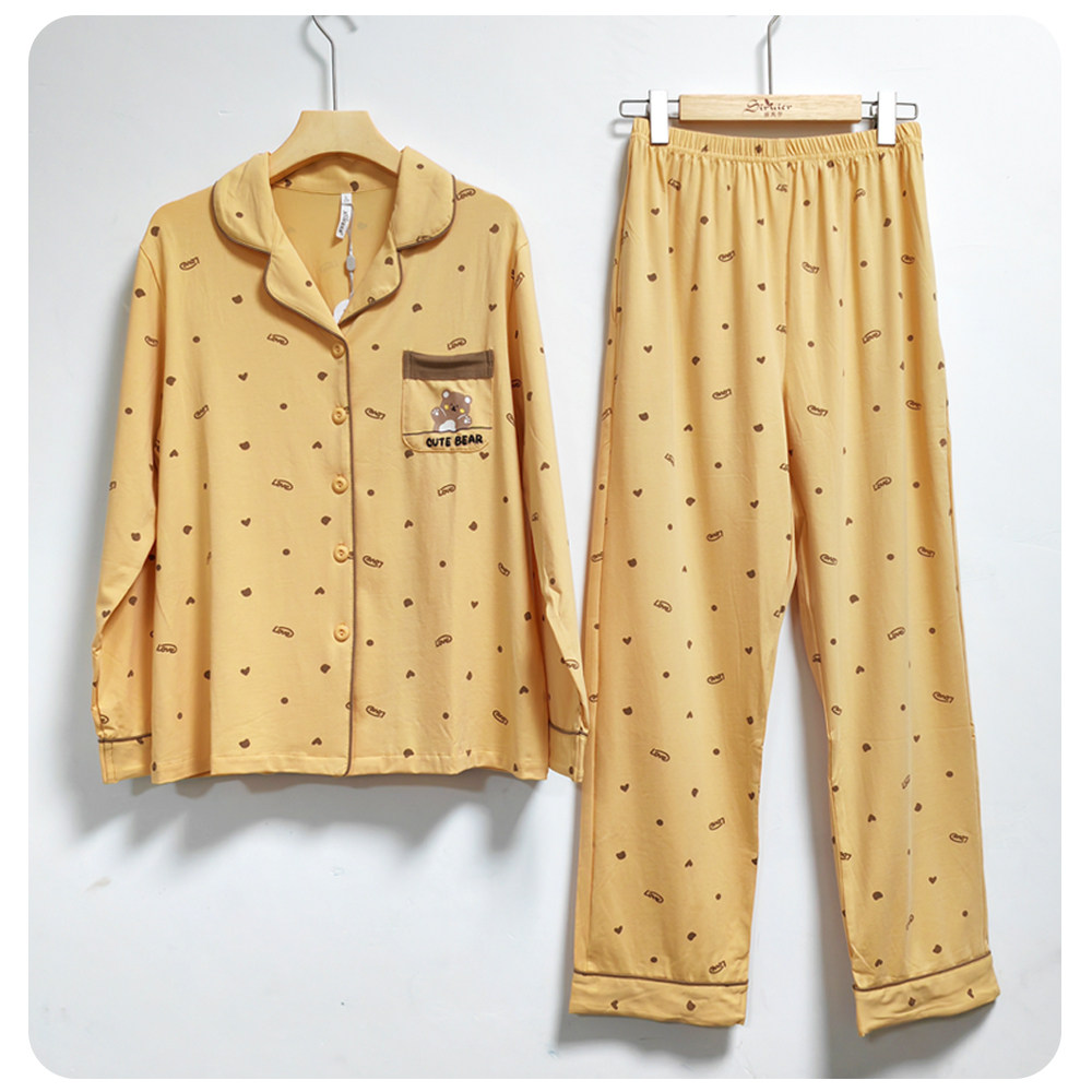 新凤舞纯棉睡衣女长袖长裤秋冬开衫两件套甜美休闲家居服薄款套装