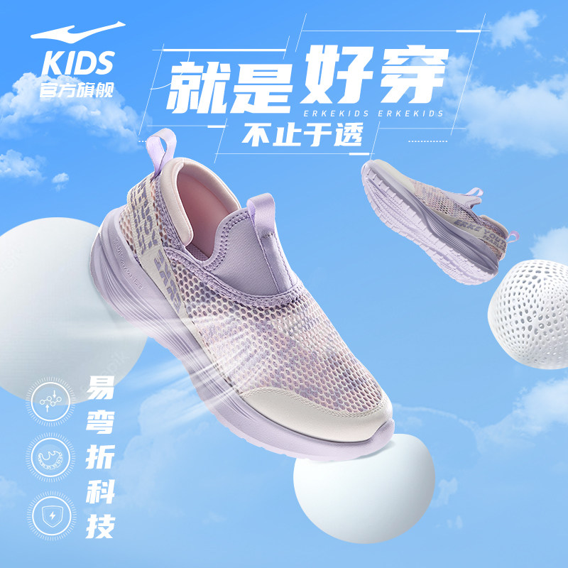 鸿星尔克女童鞋春夏季新款儿童运动鞋网面透气小女孩软底跑步鞋子
