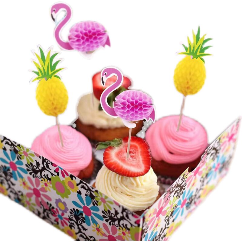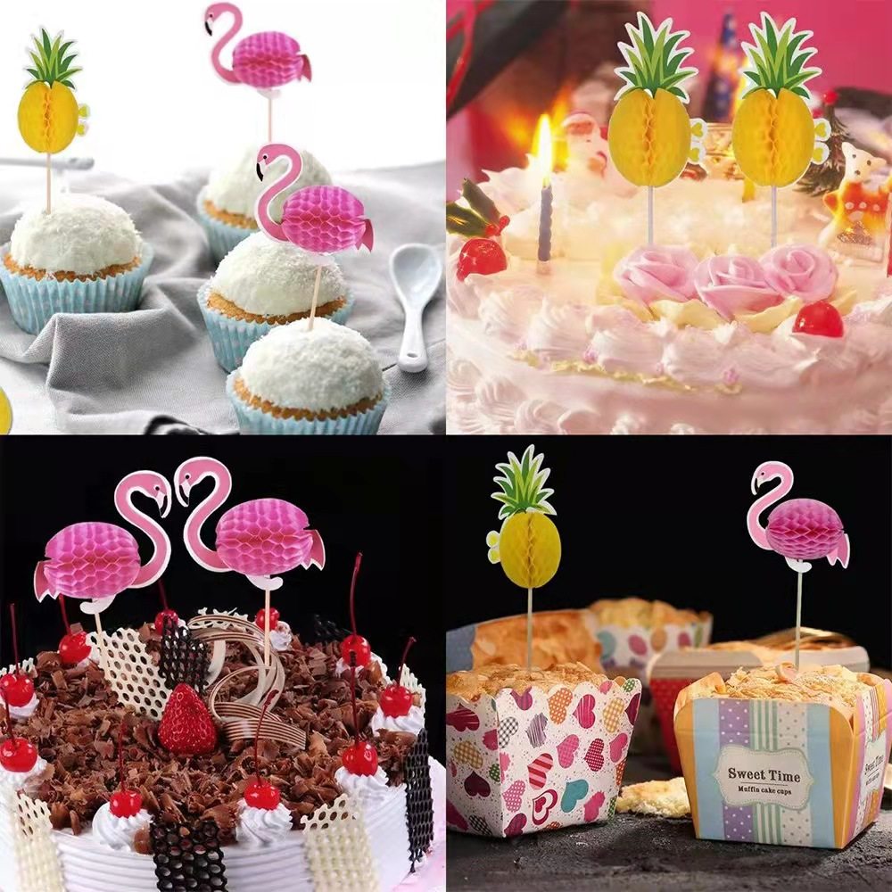 3D立体菠萝蛋糕签火烈鸟菠萝签夏威夷沙滩派对装饰签烘焙装饰插牌