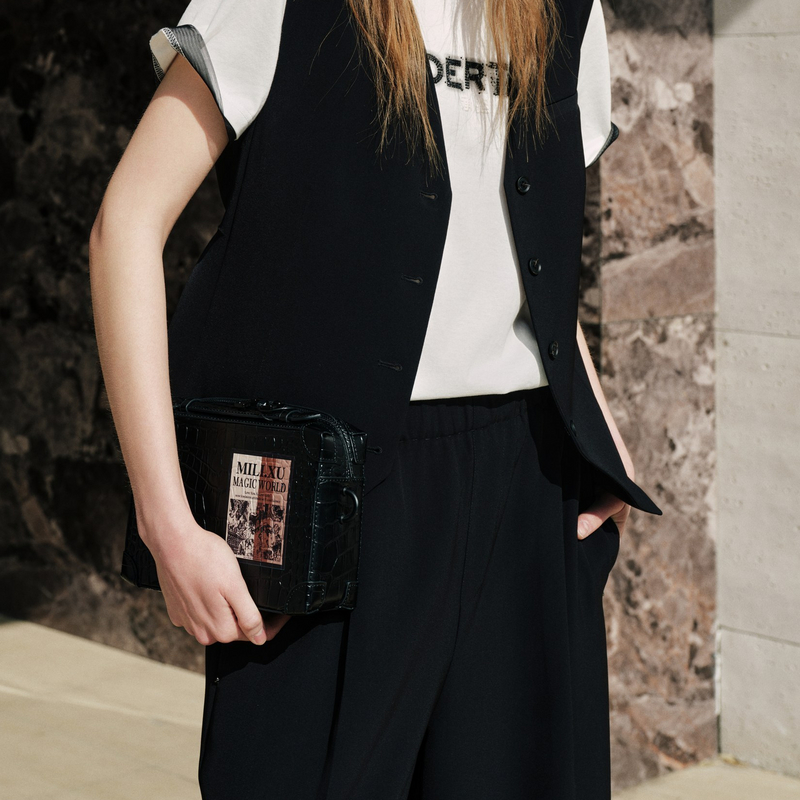 专柜新款U/TI尤缇2025秋季黑色通勤风西装裤简约垂感直筒裤长裤女
