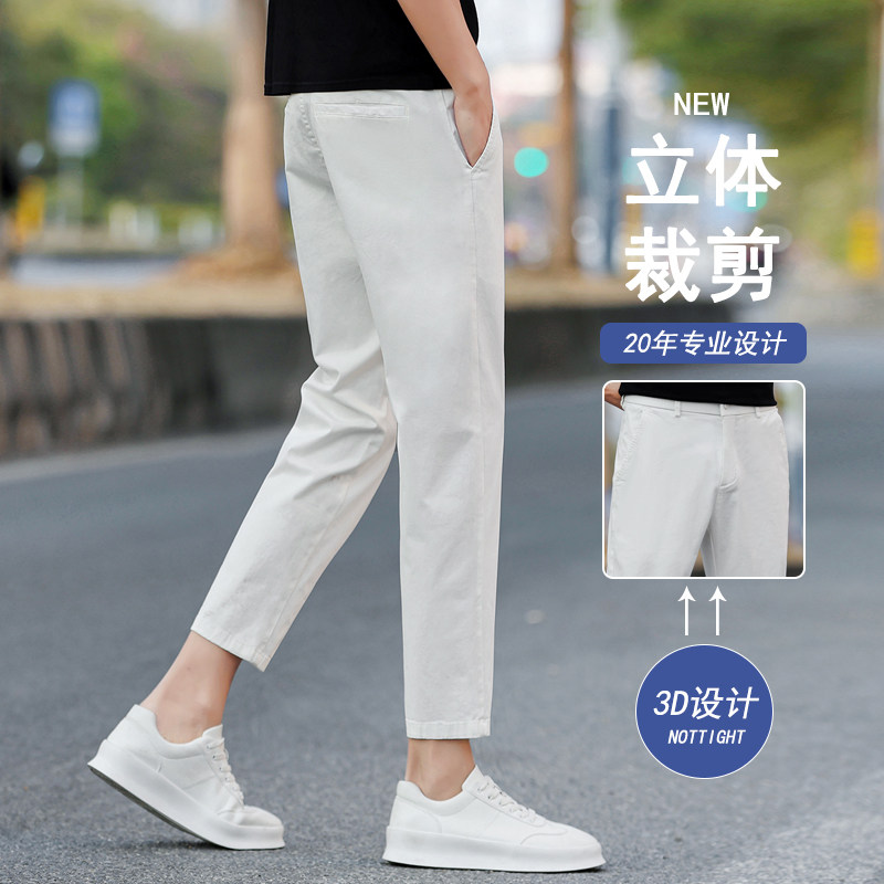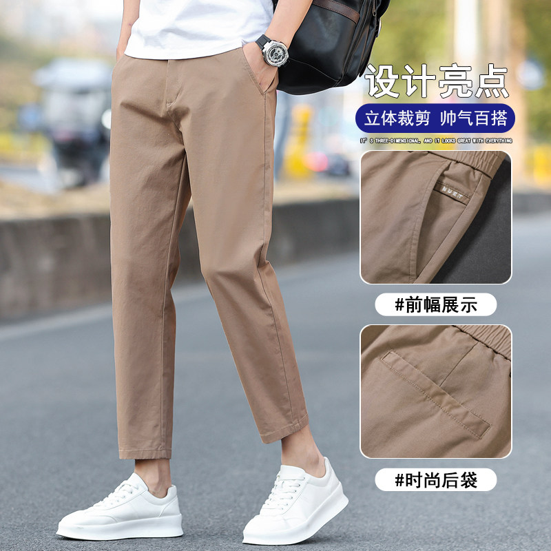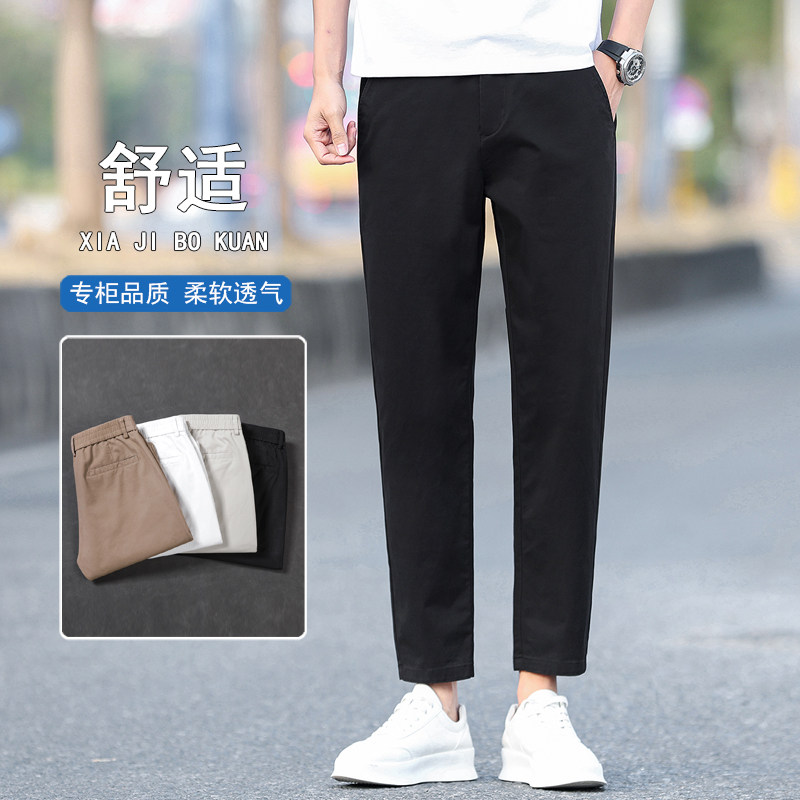2026新款纯棉九分休闲裤男士夏季修身直筒弹力百搭男生9分裤子薄
