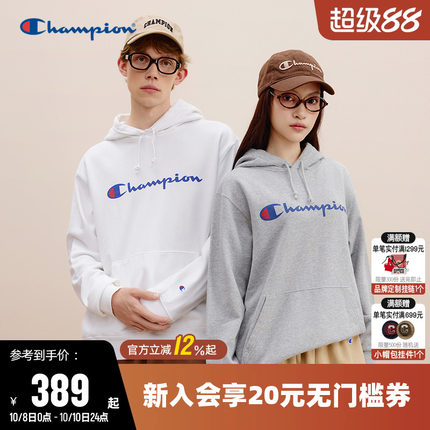 Champion冠军卫衣女2025秋新款情侣印花纯棉连帽套头休闲上衣男