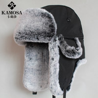 KAMOSA东北棉帽雷锋帽男女士帽子滑雪帽冬季骑车帽黑色纯色男韩版