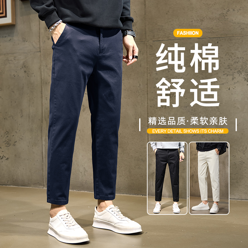 韩派2025秋季男士百搭休闲裤男小直筒长裤弹力小脚修身九分裤男