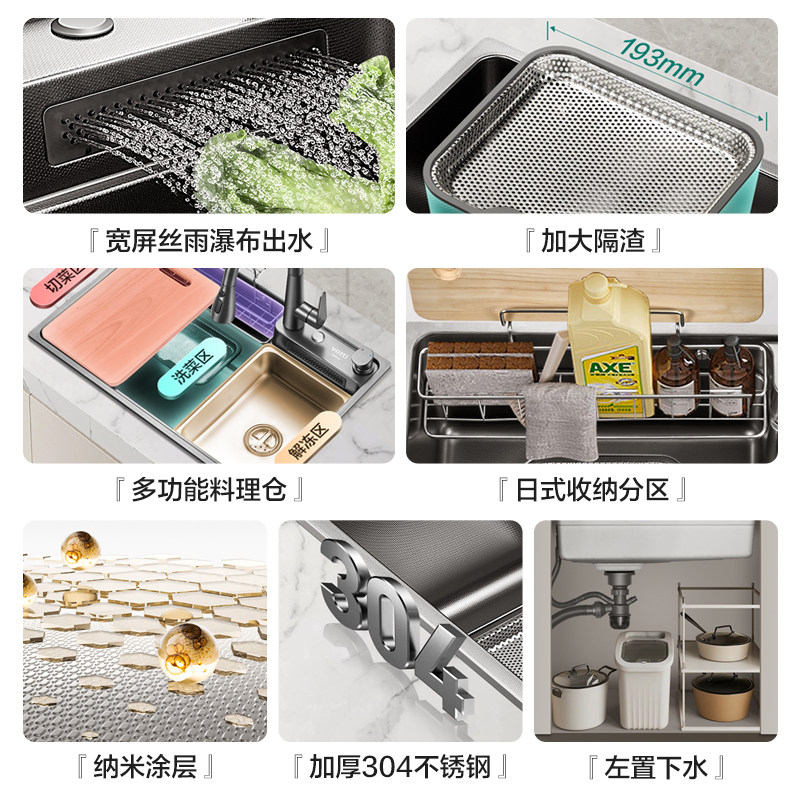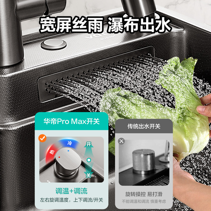 【新品上市】华帝日式丝雨集渣压纹纳米水槽加厚大单槽厨房洗菜盆
