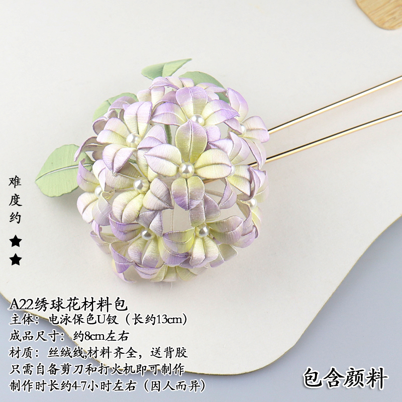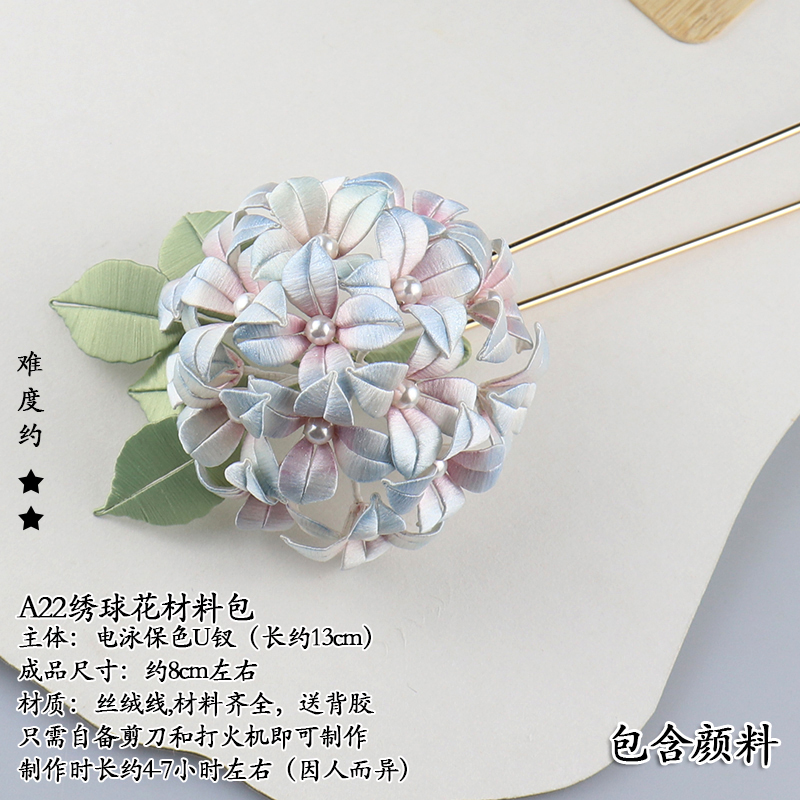 手工diy绣球花缠花材料包古风发饰手作配件汉服头饰品U形发钗子
