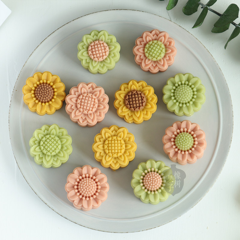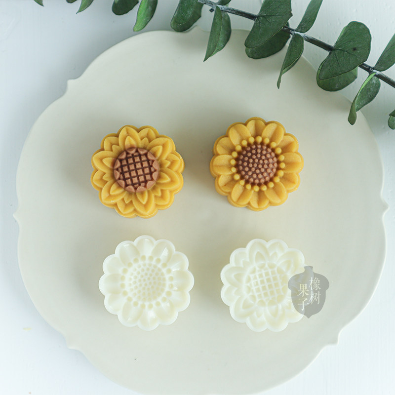 橡树果子太阳花绿豆糕模50g创意中秋节向日葵月饼模花朵辅食工具