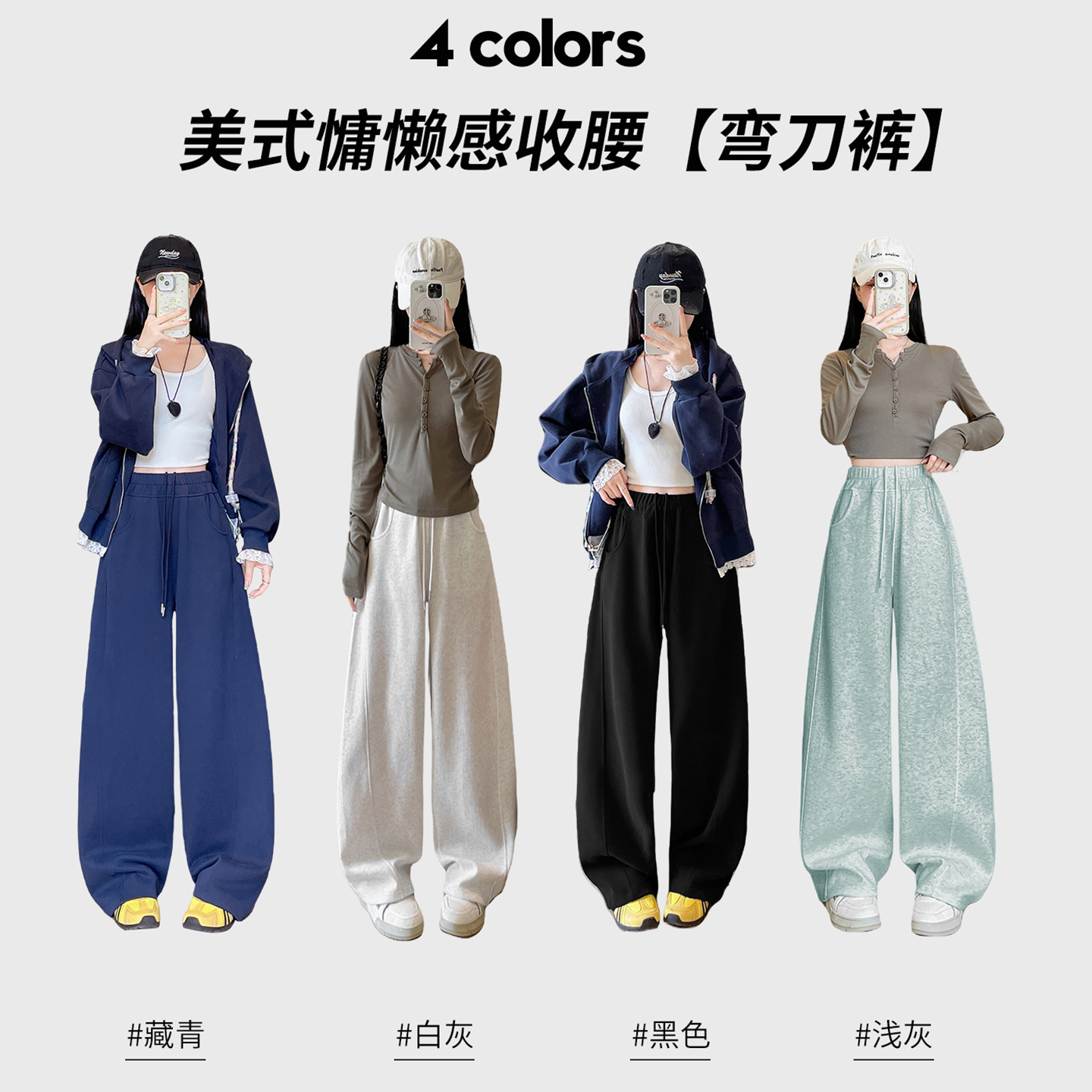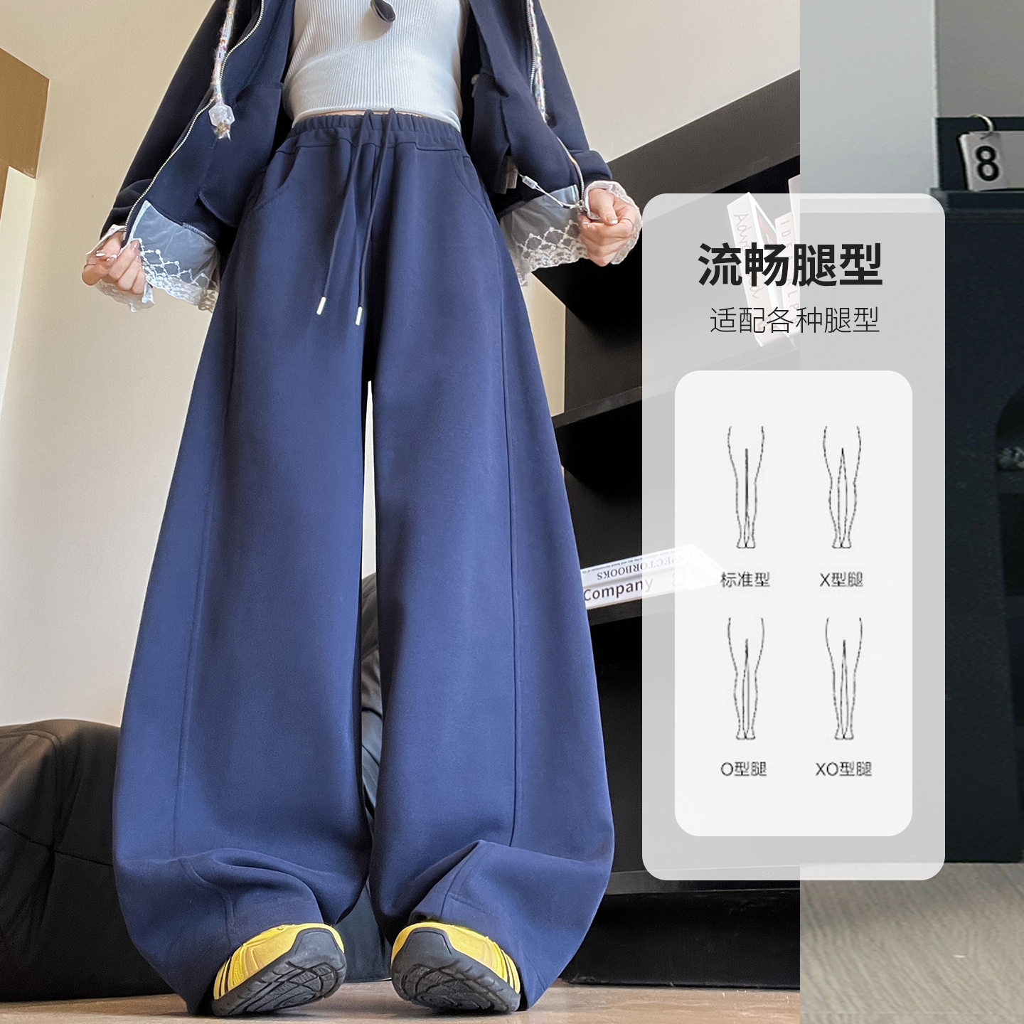 藏青弯刀阔腿裤女2025秋季新款