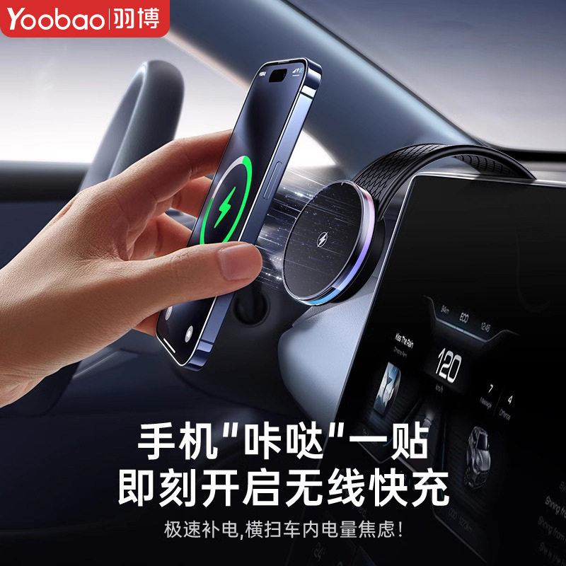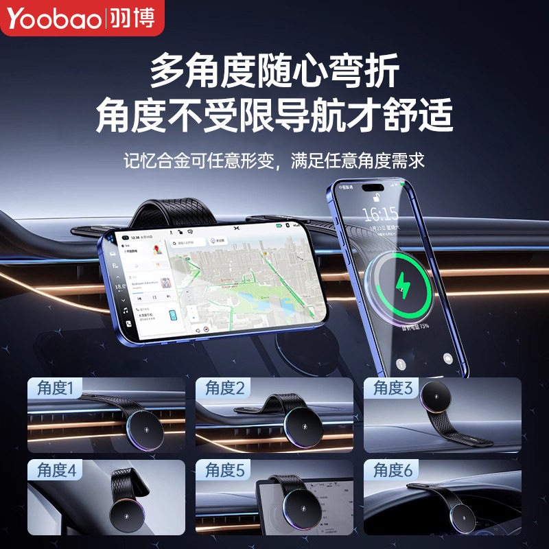 羽博-ZN9磁吸15W无线车载支架充电器创意弯曲车充