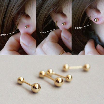 睡觉不用摘纯14K金耳环金豆豆双头圆球拧螺丝迷你耳骨耳钉上班带