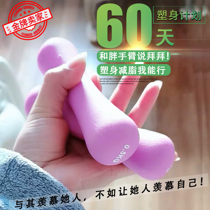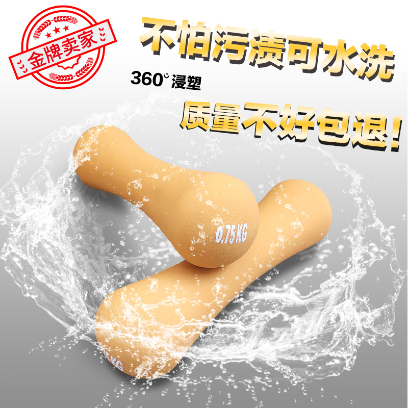 女士健身骨头哑铃一对家用儿童实心包胶运动器材固定1公斤小亚铃