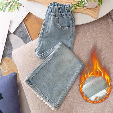 女童喇叭裤秋冬2025新款洋气一体绒加绒牛仔裤小女孩儿童马蹄裤子