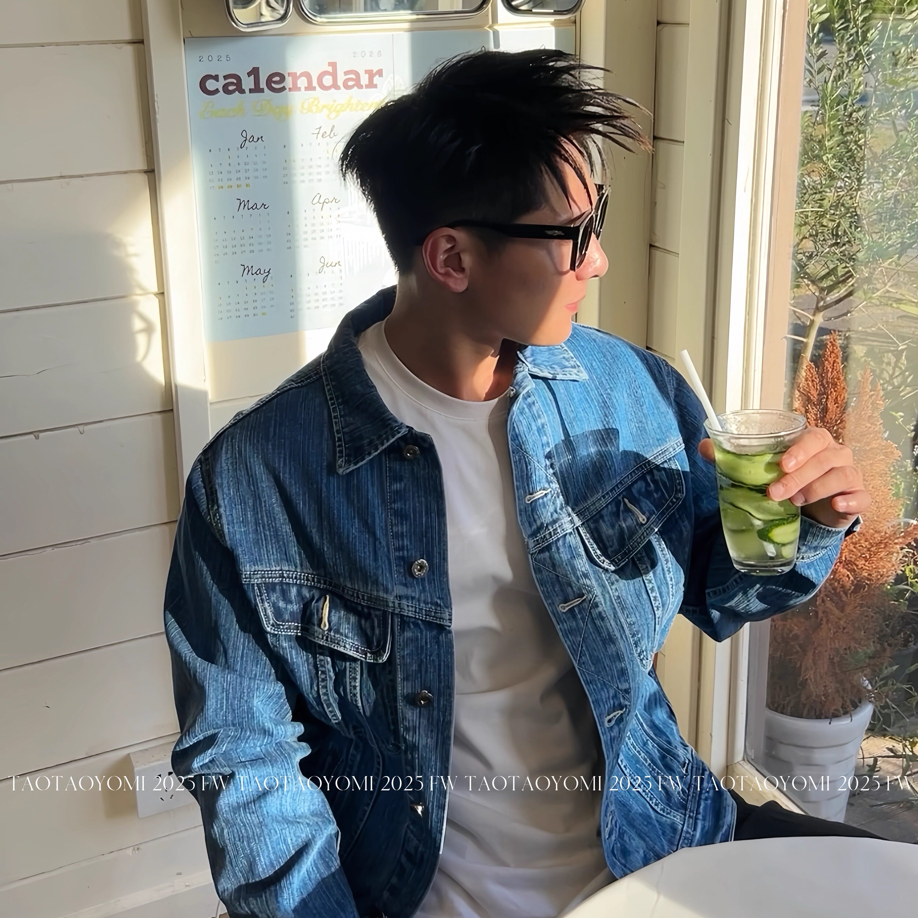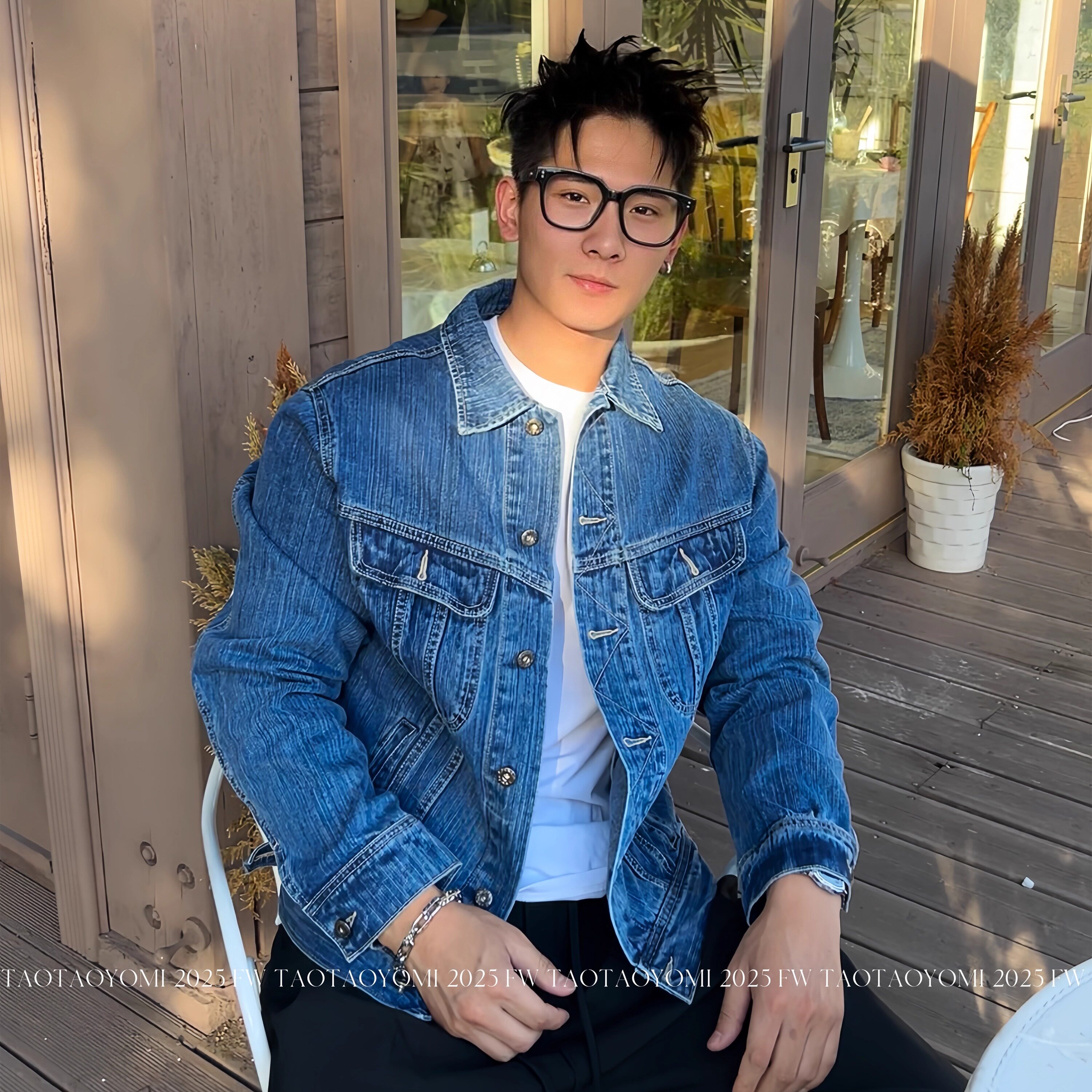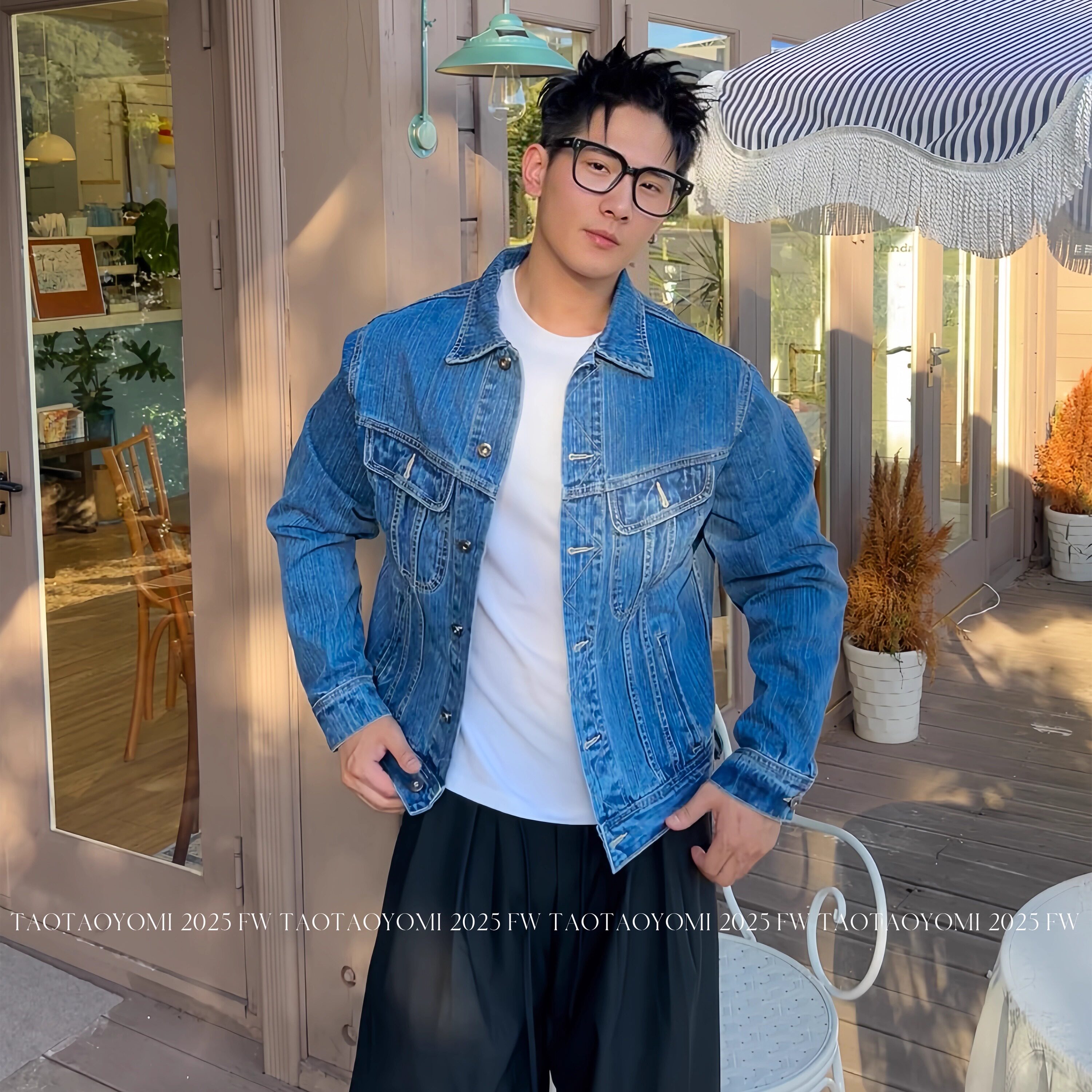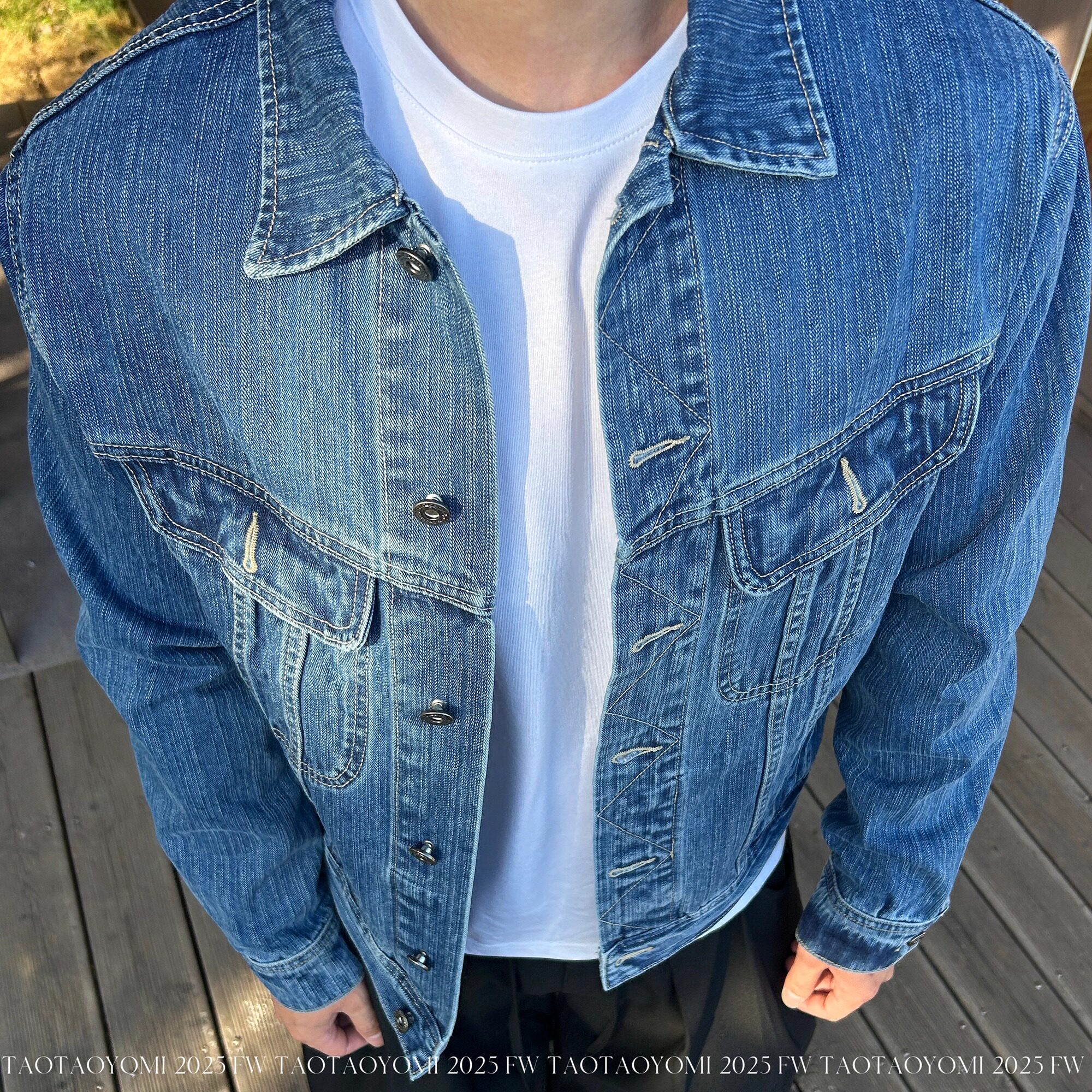 TTYM*秋季复古短款牛仔外套男翻领休韩系夹克男女休闲百搭痞帅潮
