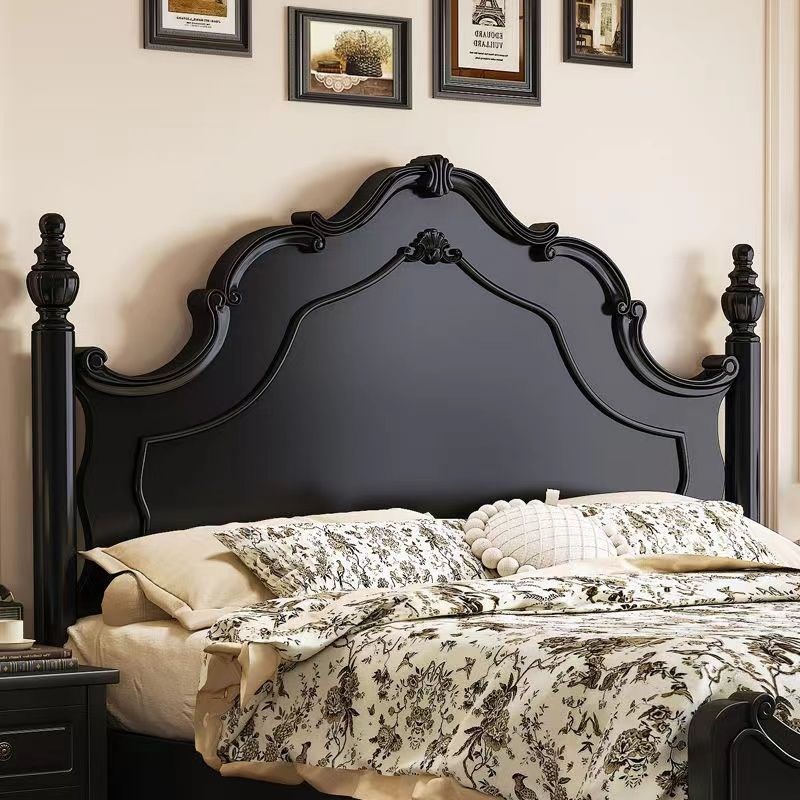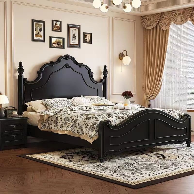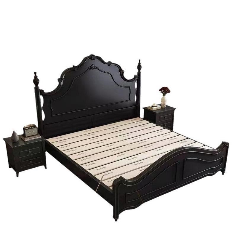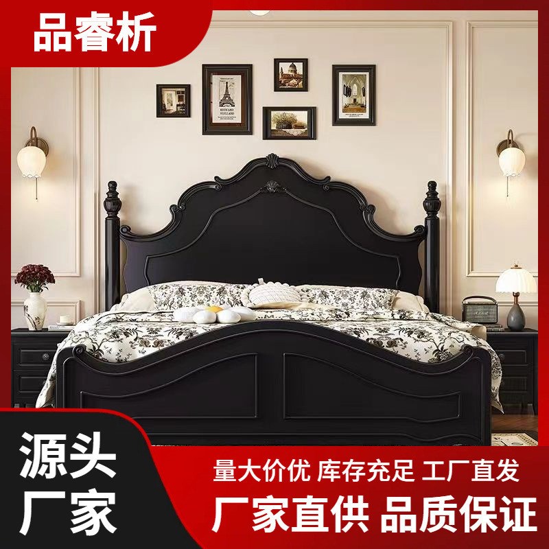 美式复古实木床简约黑色1.8m主卧双人床1.5m轻奢家用法式婚床