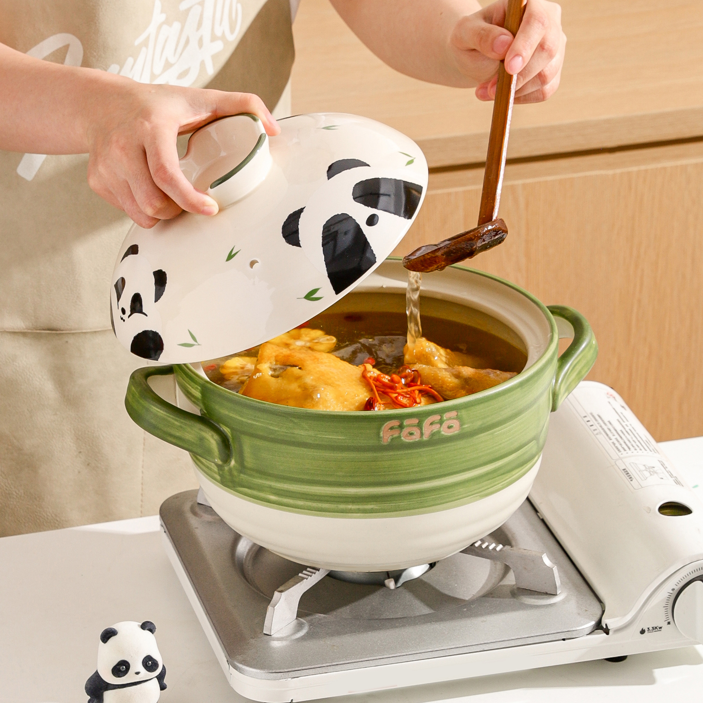 川岛屋熊猫砂锅耐高温干烧不裂家用2025新款炖汤煲汤锅燃气灶专用