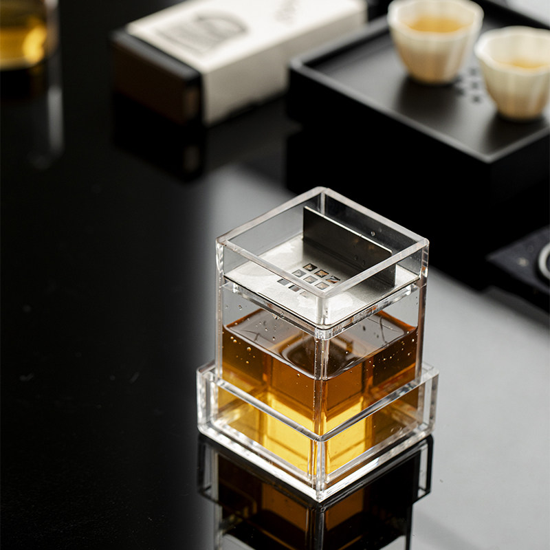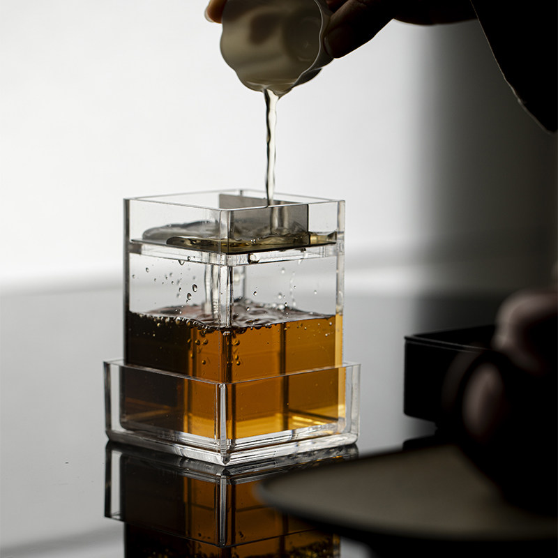 草木祠原创设计亚克力建水茶渣斗透明水盂茶洗杯洗茶道配件茶渣缸