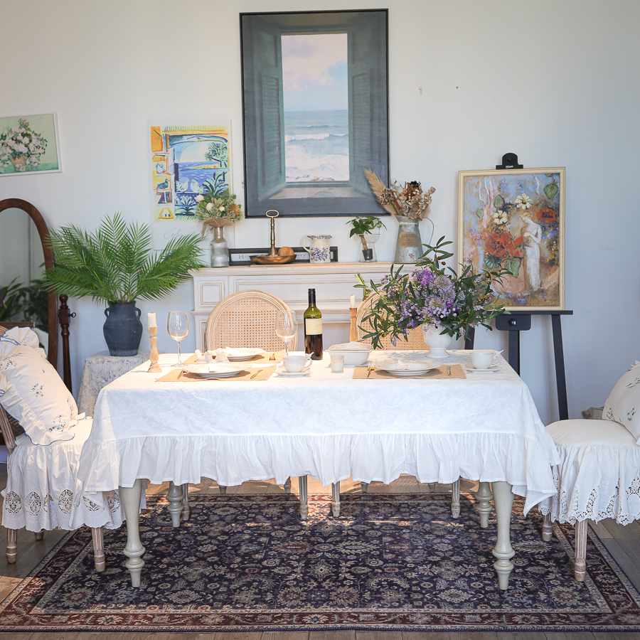 misspeony法式桌布荷叶边绣花