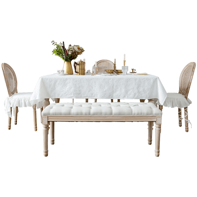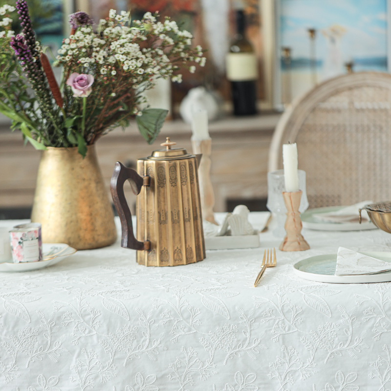 miss peony法式桌布白色绣花防水棉麻长茶几方圆桌定制台布蕾丝