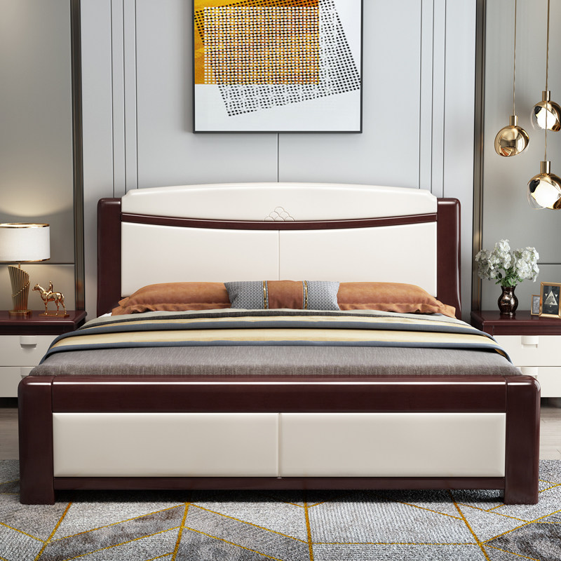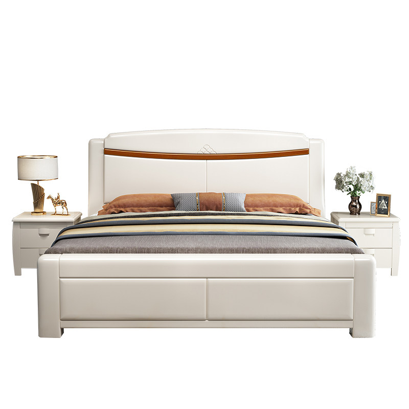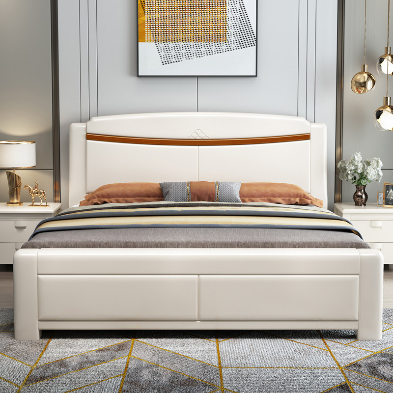 尚品宅配现代简约全实木床白色1.5m单双人1.8米奶油风高箱储物主