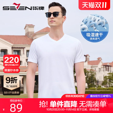 柒牌v领速干t恤男短袖2025夏季新款男士商务休闲凉感透气打底衫潮
