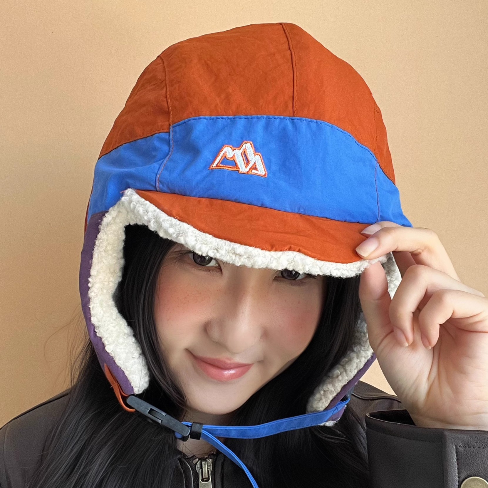 时尚拼色雷锋帽户外徒步登山帽