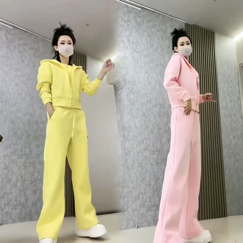 2025春秋新款韩版休闲运动服套装女潮流时尚连帽卫衣直筒裤两件套