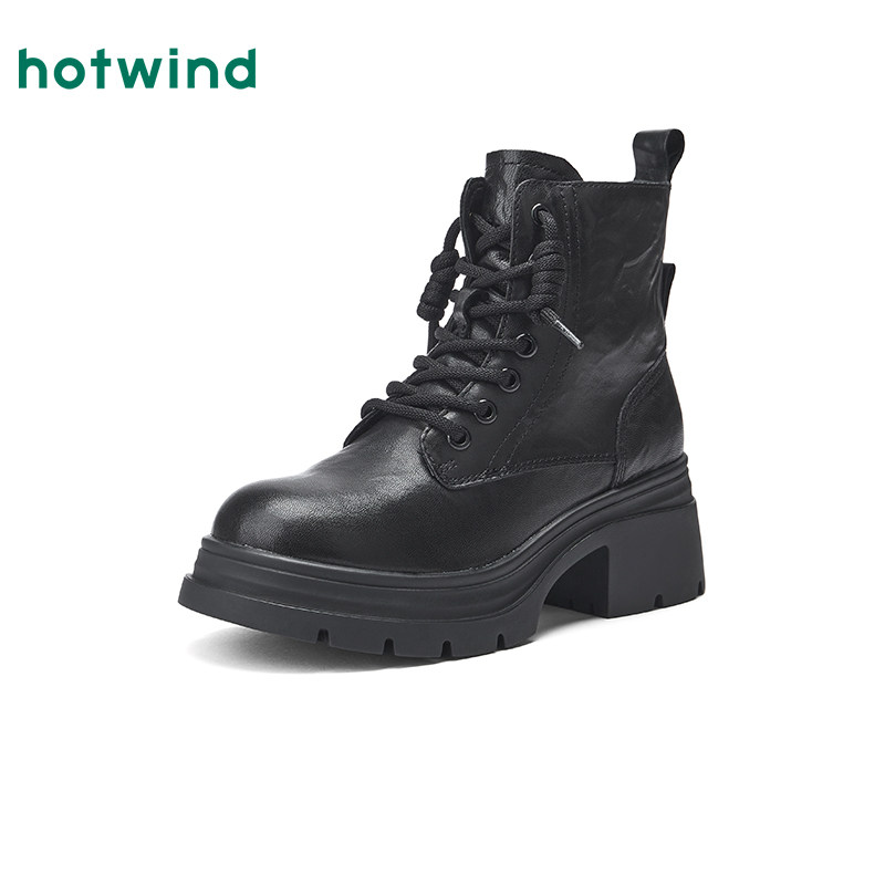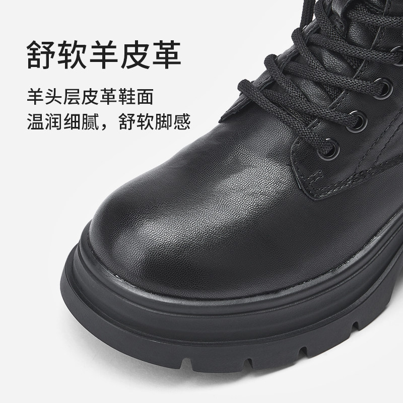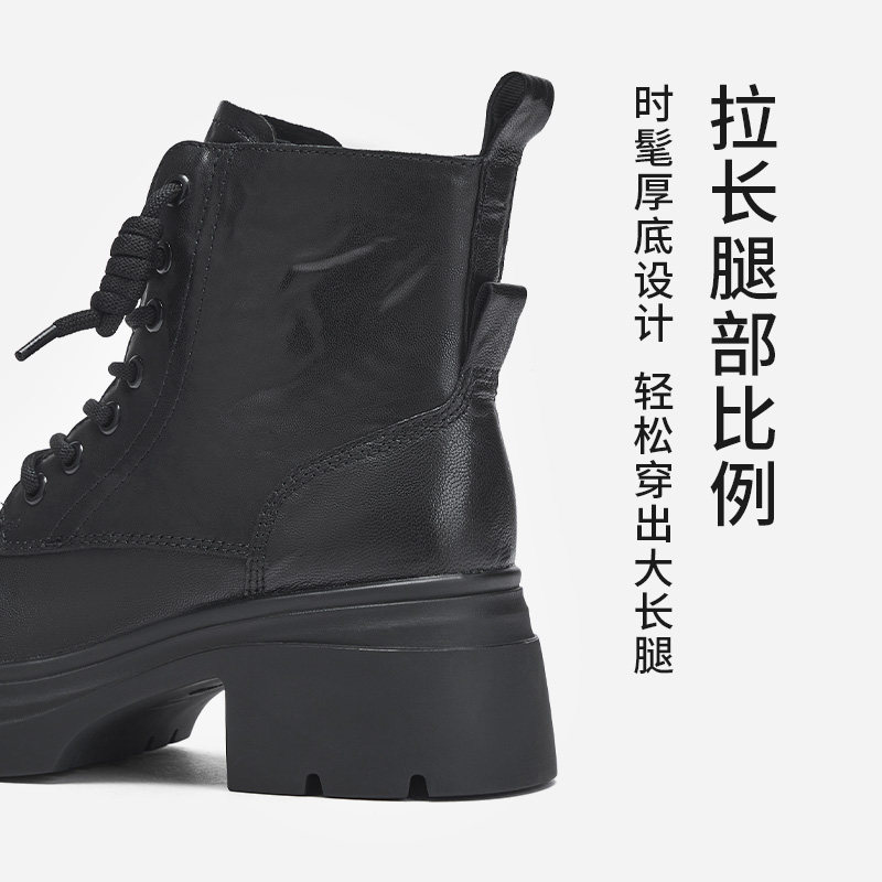 热风厚底马丁靴女款2025年冬季新款粗跟增高休闲短靴百搭黑色靴子