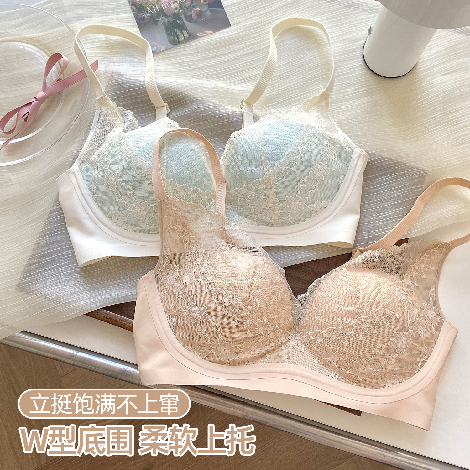 六只兔子蕾丝内衣女小胸聚拢升杯显大文胸侧收副乳防外扩甜美胸罩