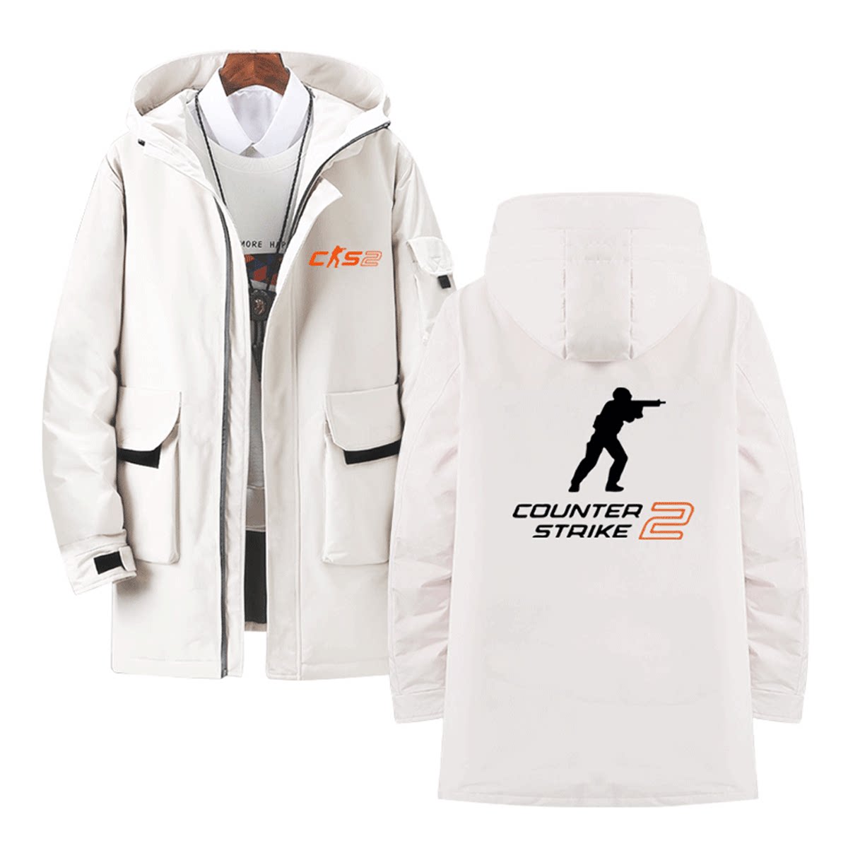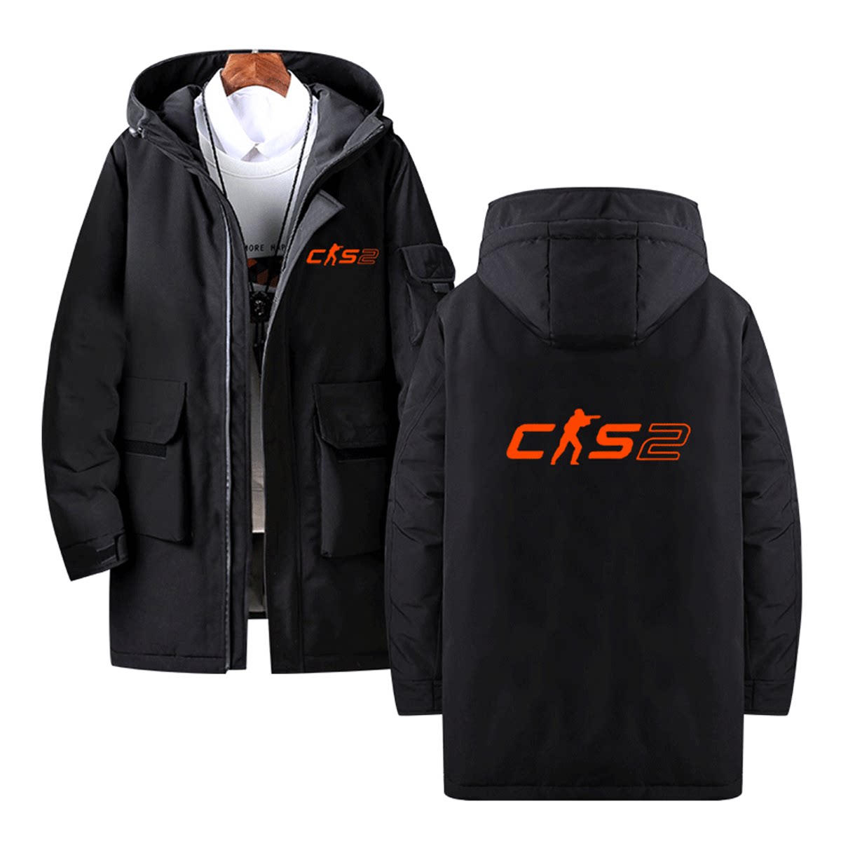 CS2反恐精英2游戏周边男女情侣可定制连帽中长款保暖冬外套羽绒服
