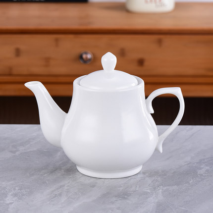餐厅酒店饭店专用陶瓷茶壶自带过滤大小号纯白色泡茶壶耐热茶水壶