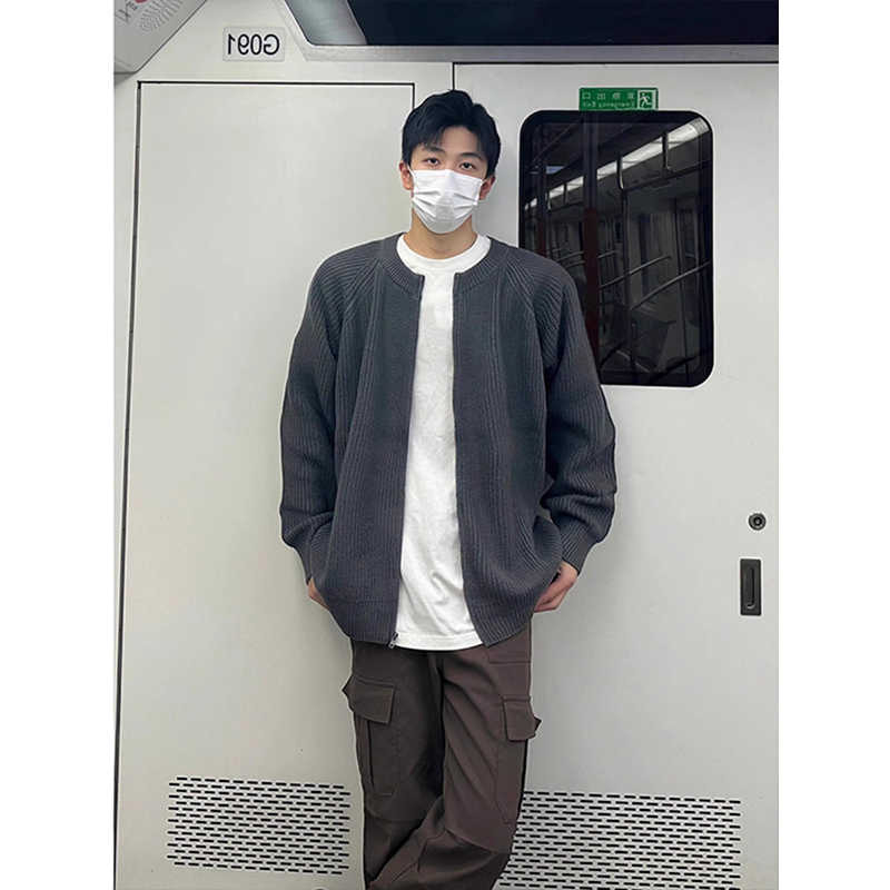 藏青色拉链开衫毛衣男秋冬美式复古慵懒风毛线衣高级感针织衫外套