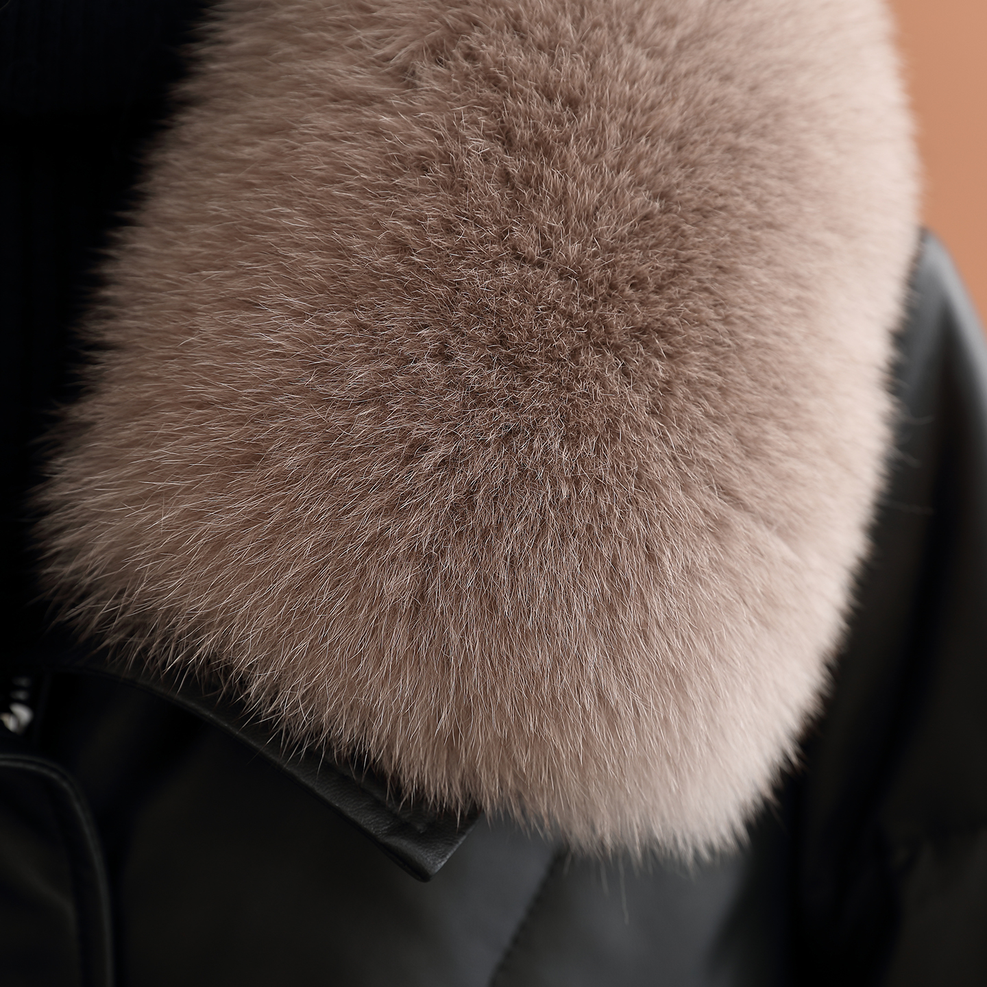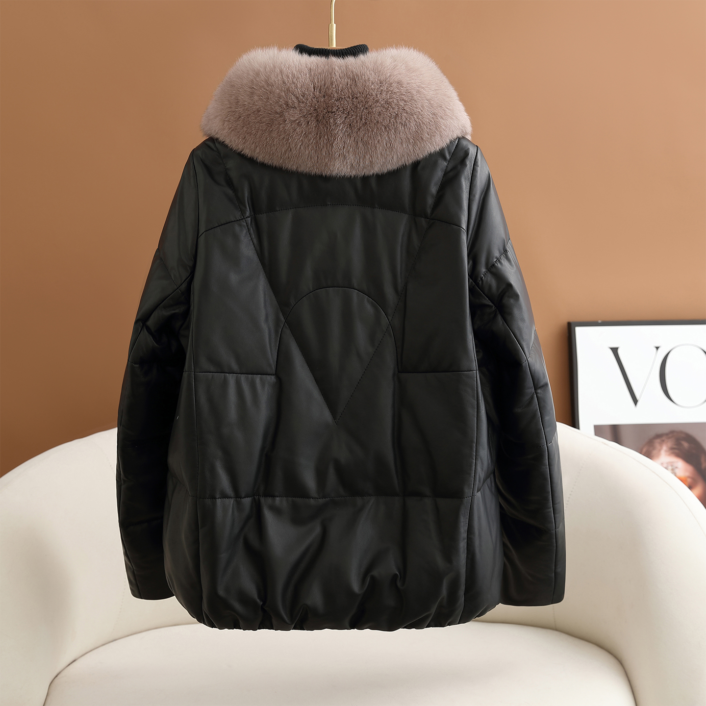 真皮羽绒服女短款2025冬季新款狐狸毛领妈妈装绵羊皮外套海宁皮衣