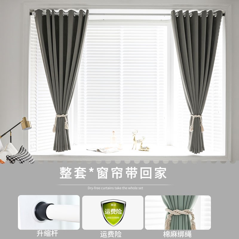 卧室免打孔窗帘伸缩杆一整套简易安装全遮光P卧室新款飘窗遮阳布