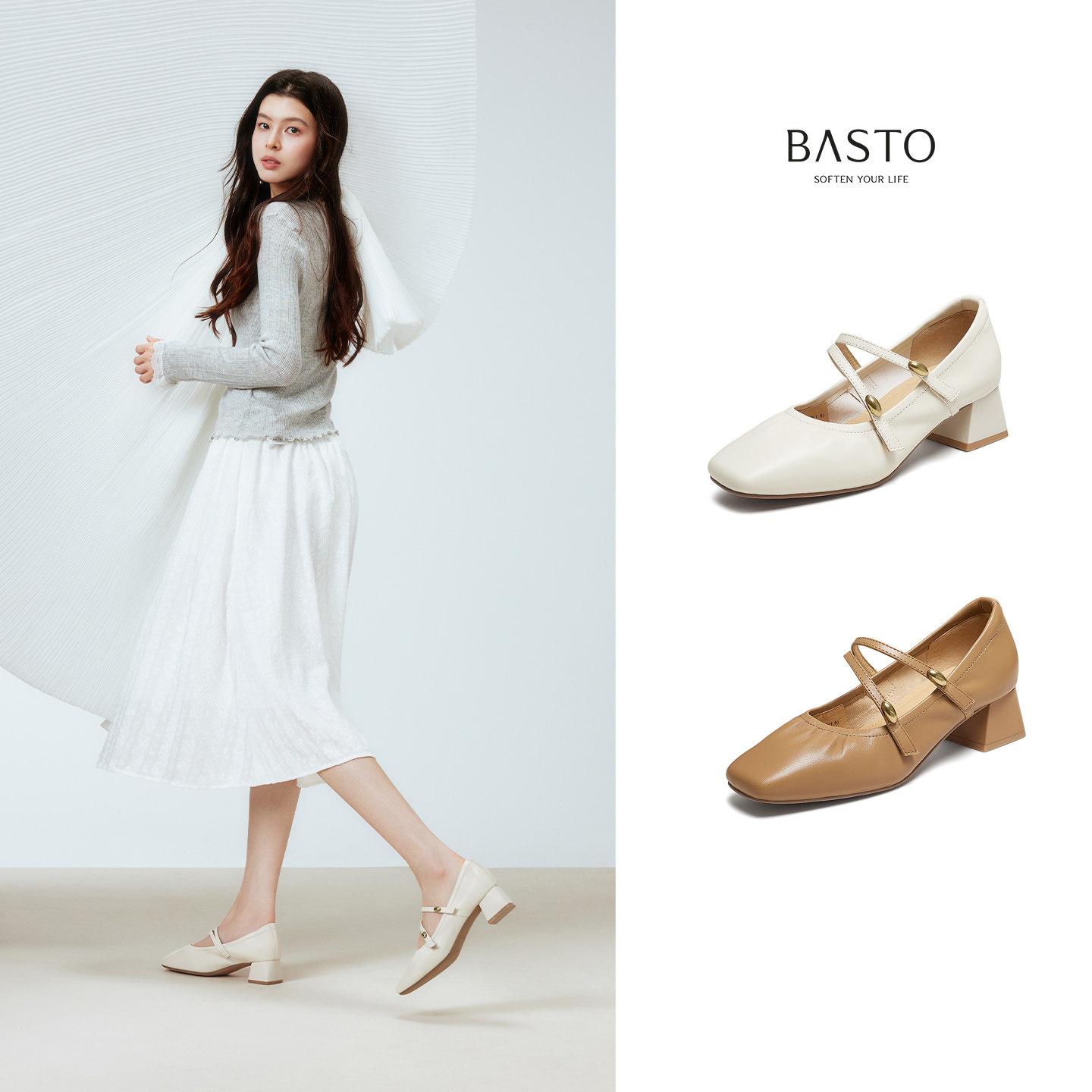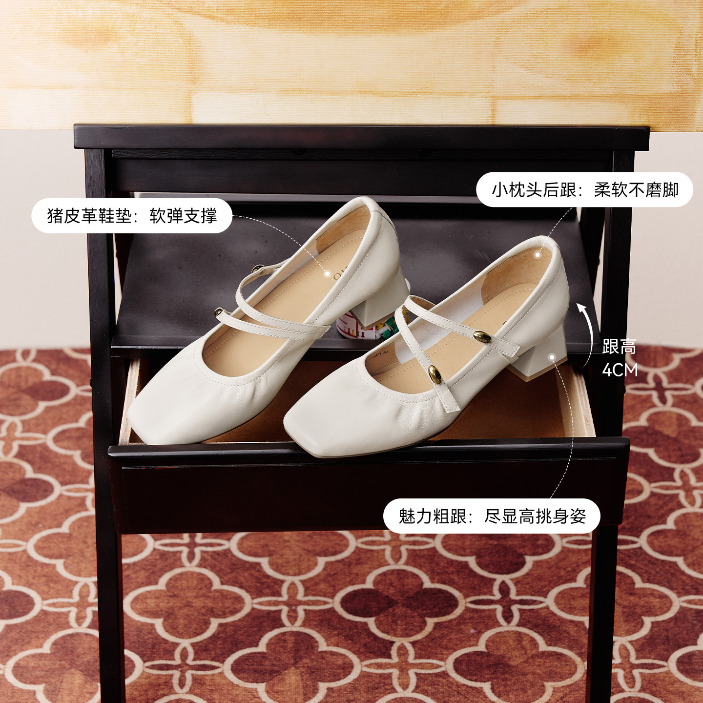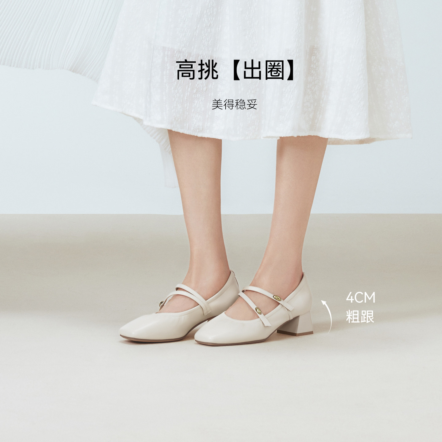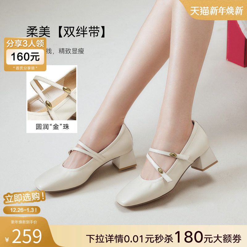 百思图2025秋季商场新款羊皮白色玛丽珍鞋法式浅口女单鞋C5911CQ5