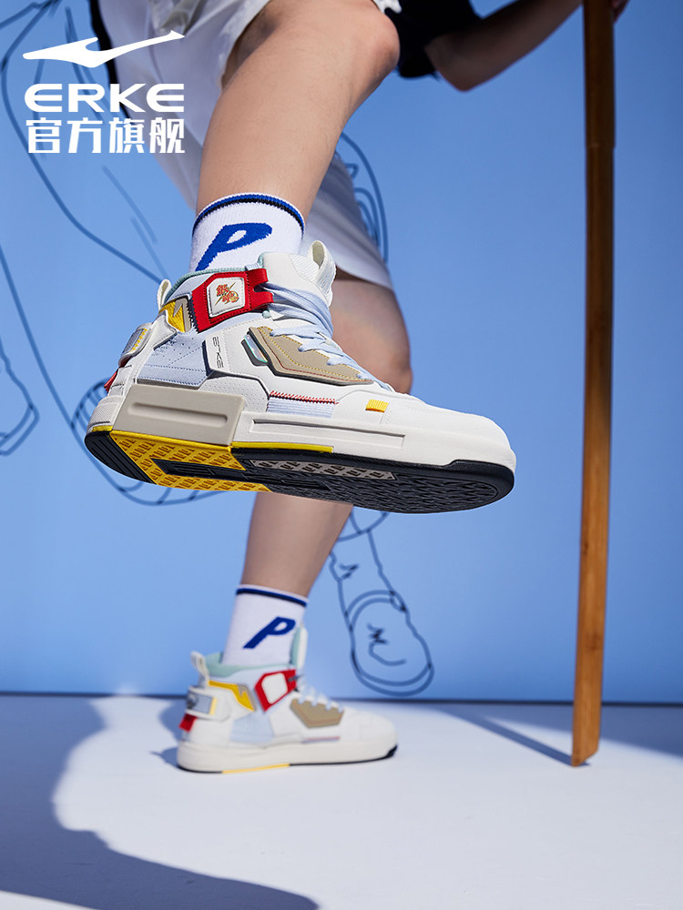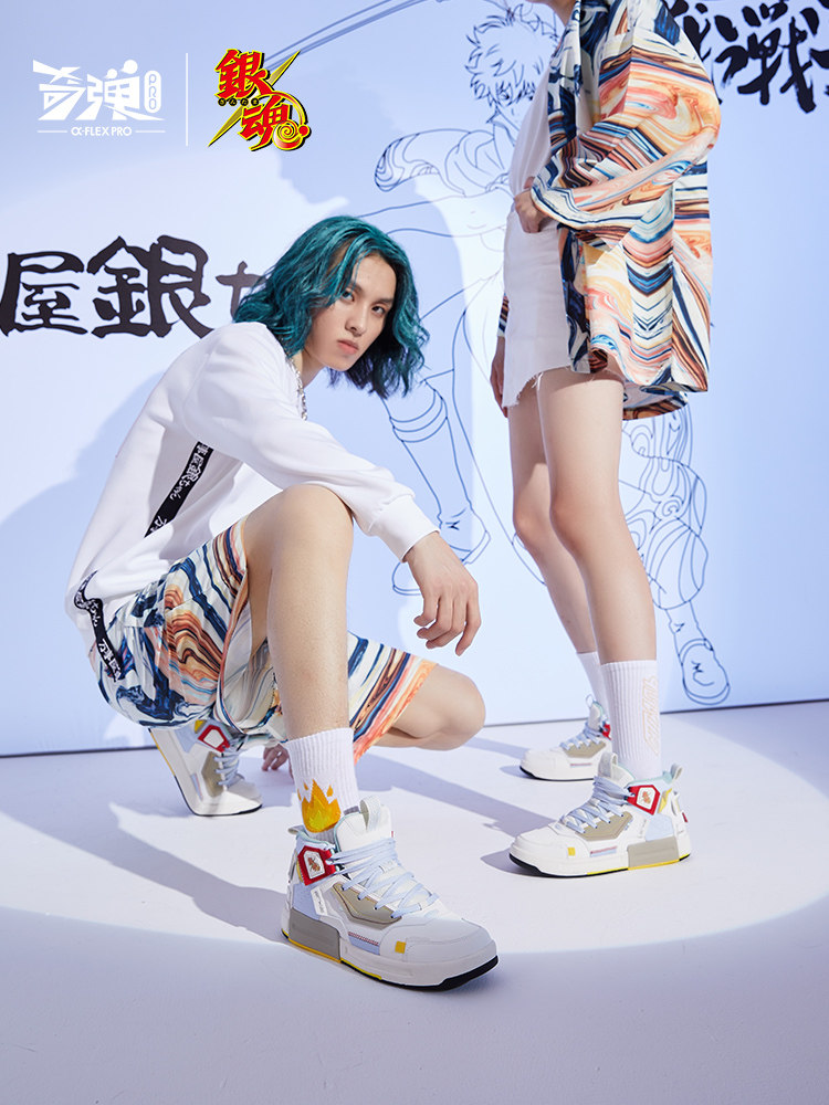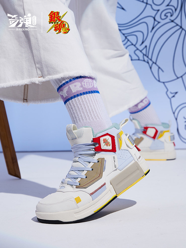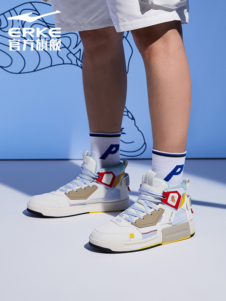 鸿星尔克男女情侣鞋银魂联名高帮休闲奇弹科技板鞋11120301529
