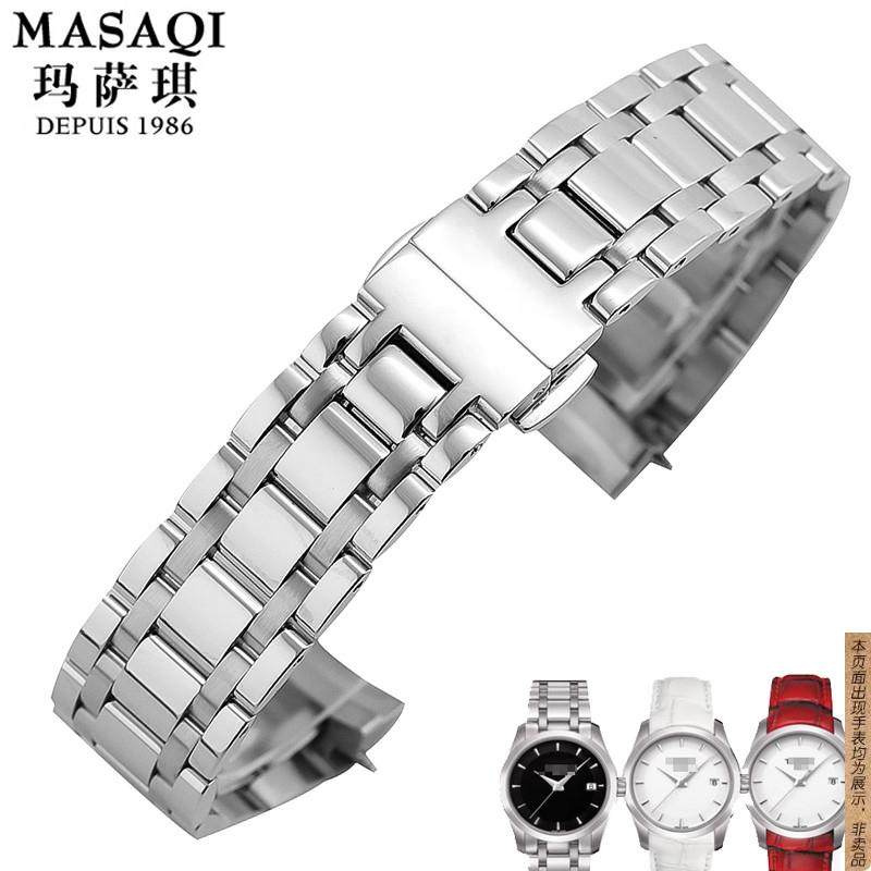 原厂代用适合天梭库图钢带1853女T035207钢链T035210A手表带银色1