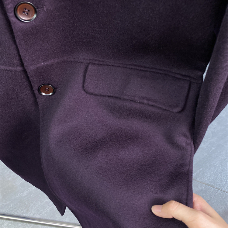 修身50码~纯羊毛双面呢子大衣外套上衣紫红色西装风衣男装SGP934