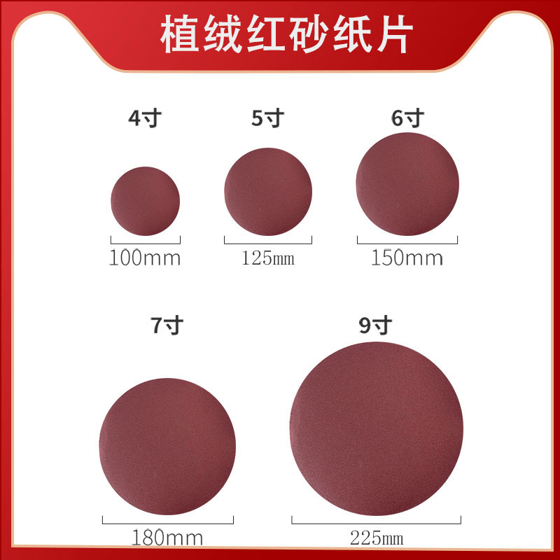 极速5寸植绒砂纸片4寸7寸红砂圆盘打磨I机抛光拉绒片自粘气磨机砂