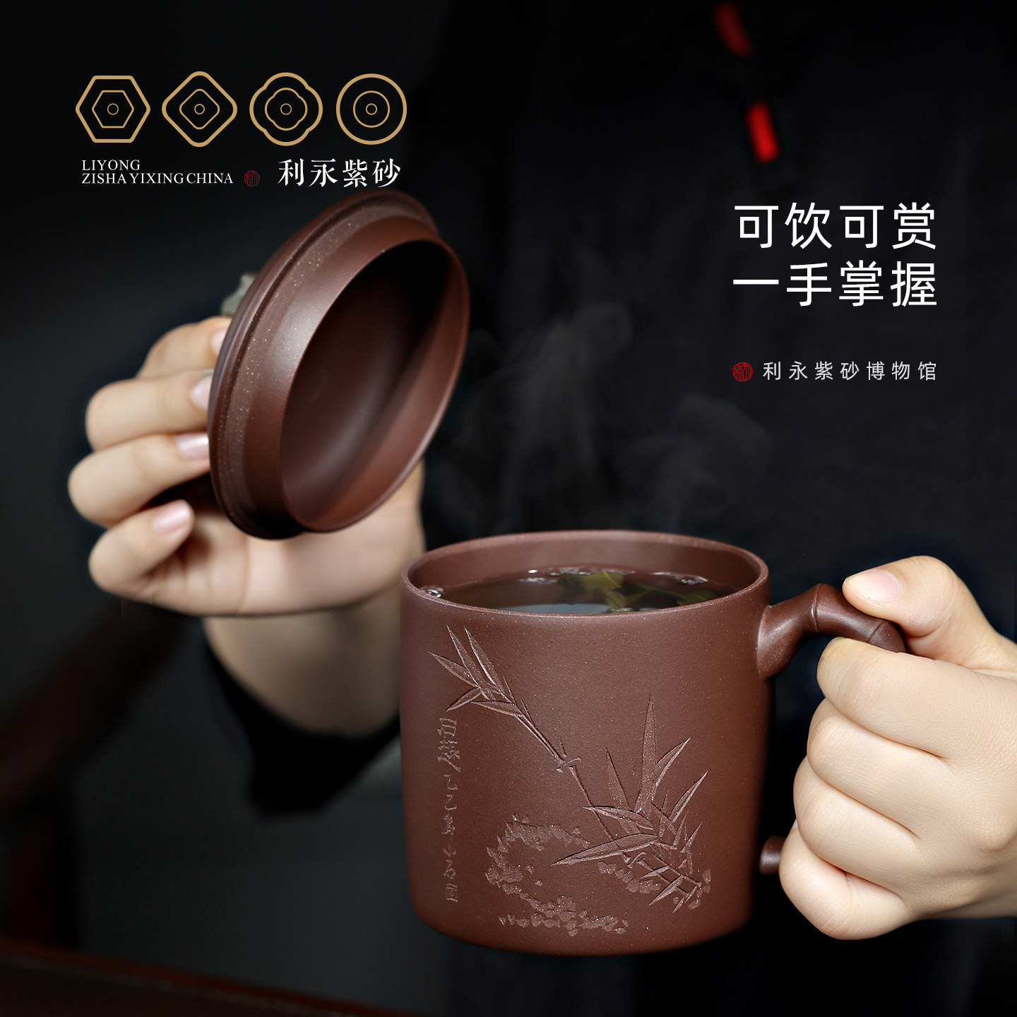 百年利永宜兴原矿紫砂杯办公室个人专用大容量家用带盖泡茶杯盖杯