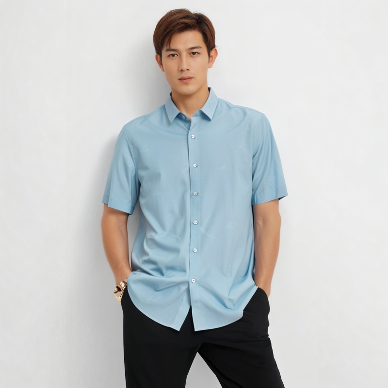 46%再生纤维~豆家撤柜尾货男士商务休闲短袖衬衫夏季垂顺免烫衬衣