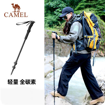 骆驼户外登山杖碳纤维徒步手杖折叠爬山登山碳素轻便伸轻量款拐杖