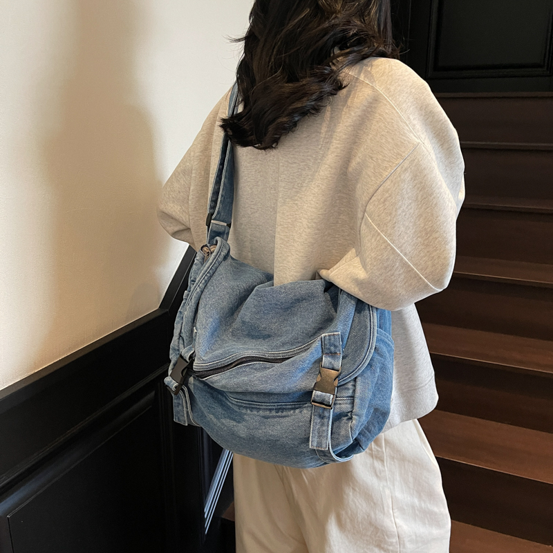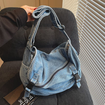 包包女2025新款潮休闲复古通勤斜挎包大容量牛仔布单肩包帆布背包