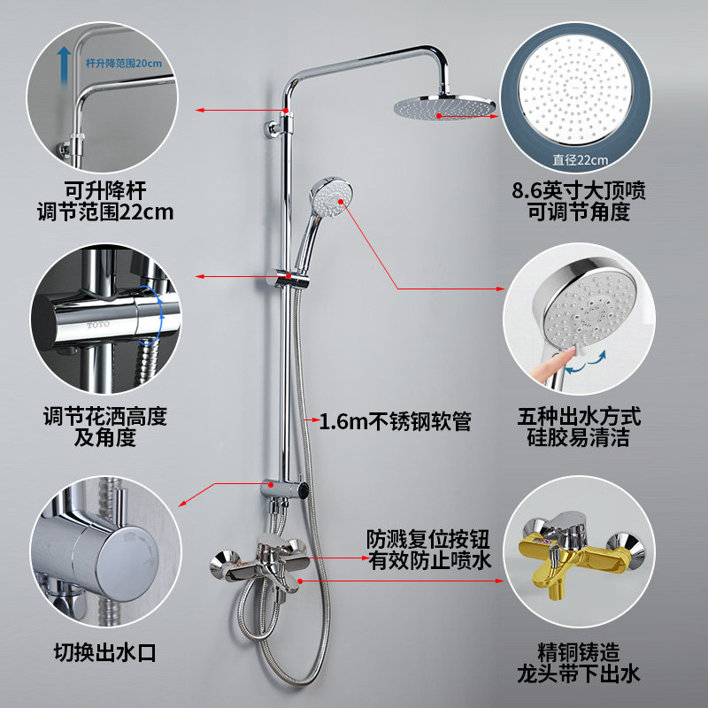 TOTO淋浴花洒套装TBS04302B家用壁挂手持大顶喷多功能花洒(05-F)